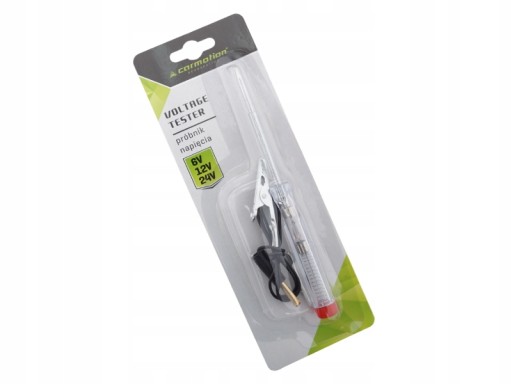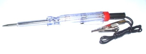 Urządzenie przeznaczone do lokalizacji napięcia w instalacjach elektrycznych samochodów z instalacjami 6/24V. Wewnątrz przeźroczystego uchwytu umieszczona jest lampka, która w momencie wykrycia napięcia zapali się.
