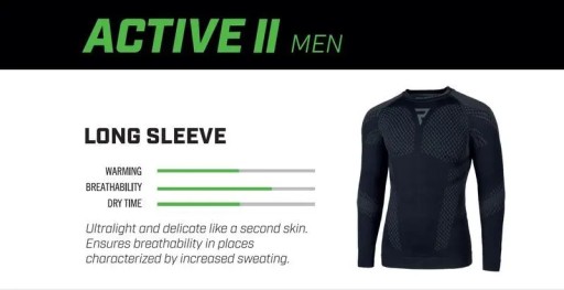 Koszulka termoaktywna motocyklowa Rebelhorn Active II utrzymuje komfort termiczny nawet w chłodne dni. Idealnie sprawdzi do jazdy motocyklem poza sezonem. Rebelhorn Active II swobodnie dopasowuje się do kobiecej sylwetki. Model ten sprawdzi się również w sportach outdoorowych.