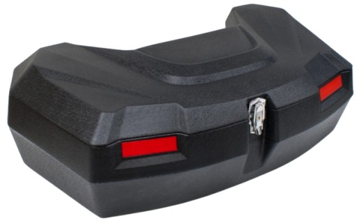Kufer jest bardzo dobrze i solidnie wykonany z odpornego na wszelkiego rodzaju trudne warunki atmosferyczne czy też mechaniczne uderzenia z tworzywa polietylenowego w kolorze czarnym. Zarówno kufer, jak i wbudowane oparcie dla pasażera jest w pełni wodoodporne o czym świadczy użyty wysokiej jakości skaj do jego obicia czy też specjalna uszczelka silikonowa zabezpieczająca klapę. Bryła kufra posiada bardzo nowoczesny oraz stosunkowo agresywny wygląd w postaci różnego typu wcięć aerodynamicznych, przez co idealnie komponuje się z najnowszymi na rynku pojazdami ATV. Klapa jest zamykana za pomocą centralnego zatrzasku metalowego, co przekłada się na pewne zapięcie podczas jazdy, natomiast całość posiada możliwość zamknięcia za pomocą kluczyka, przez co można bezpiecznie pozostawić pojazd poza nasza obecnością.