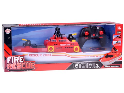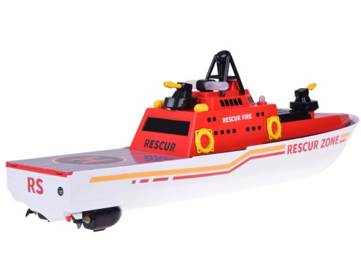 - Duża łódź ratunkowa wodna Straż pożarna sterowana za pomocą pilota 2,4 GHz to zabawka przeznaczona dla dzieci interesujących się akcjami ratunkowymi. Jest ona wyposażona w dwa silniki elektryczne, które napędzają śruby, co pozwala jej poruszać się płynnie po tafli wody. Łódź strażacka ma również funkcję lania - strzelania wodą. Na dziobie łodzi znajduje się armatka, która sterowana jest za pomocą pilota, obraca się wokół w prawo i lewoi i bez problemu można precyzyjnie strzelać do celu. Łódź działa niezwłocznie po zetknięciu z wodą, wówczas za pomocą pilota uruchamiają się śruby i można sterować łódką. Zabawa w 100% murowana!Funkcje pilota:- czerwony guzik odpowiada za uruchomienie łódki- za pomocą lewarka łódka pływa do przodu i do tyłu- drugi lewarek odpowiada za skręcanie w prawo, lewo- przyciski odpowiadają za obrót armatki w prawo i lewo- prawy przycisk strzela wodą- lewy uruchamia światłaAtrakcje łodzi:- płynne, sprawne pływanie- strzelanie wodą- świecące światła, nocne świtała nawigacyjneZestaw zawiera:- łódź ratunkowa- pilot zdalnego sterowania- 1 x akumulator przeznaczony do łodzi- kabel USB do łatwego, szybkiego ładowania- 2 zapasowe śruby