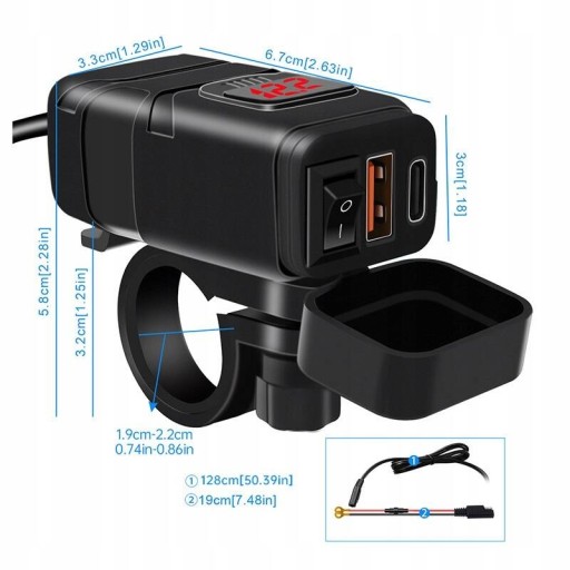 - ŁADOWARKA MOTOCYKL 2x USB QC3.0 SZYBKIE ŁADOWANIE Samochodowa Laptop USB-C