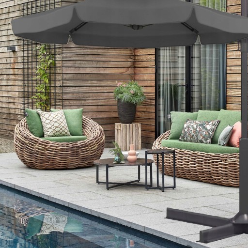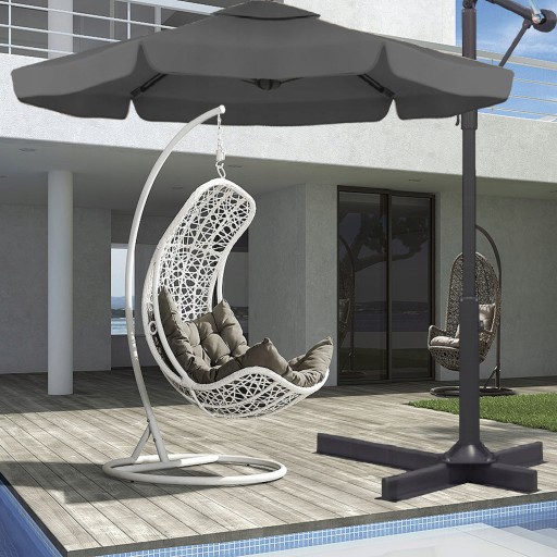 Parasole na wysięgniku idealnie spisują się jako zacienienie nawet nad bardzo rozbudowanymi zestawami mebli ogrodowych, na tarasach, balkonach lub po prostu w kąciku na działce.