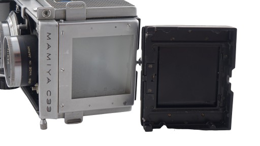 Z tyłu folii znajduje się czerwone okienko z osłoną, ponieważ jest to aparat automatyczny, nie jest konieczne wyrównywanie papieru podkładowego z okienkiem. Okienko służy jedynie do sprawdzenia obecności folii. Podstawowym aparatem C33 jest aparat na kliszę 120, ale istnieją wersje wyposażone w tylną część aparatu na kliszę 220. Do pokrycia nie użyto skóry ekologicznej. Zamiast tego zastosowano zastrzeżone pokrycie Mamiya z małą wypukłą literą „M”.