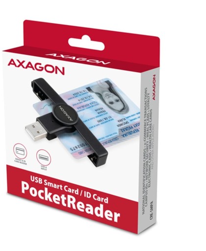 Składany kieszonkowy czytnik Smart card / ID card AXAGON CRE-SMPA PocketReader z interfejsem USB-A 480Mbps. Szczególnie nadaje się jako czytnik kart identyfikacyjnych do użytku z telefonami komórkowymi wyposażonymi w wejście USB-A. Najpopularniejsze złącze USB-A zapewnia połączenie z prawie każdym nowym i starszym komputerem.