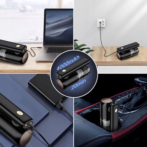 Bezprzewodowy odkurzacz może być ładowany bezpośrednio w pomieszczeniach, w samochodzie lub w porcie USB komputera, dzięki czemu doskonale nadaje się do domu, samochodu, biura i środowiska zewnętrznego.