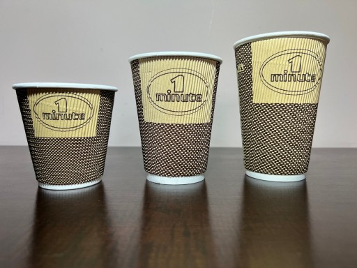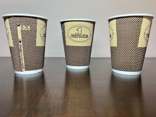 Rodzaj kubka: kubek papierowy trzywarstwowy ze stopką karbowany, nadruk standardowy kolory KRAFT