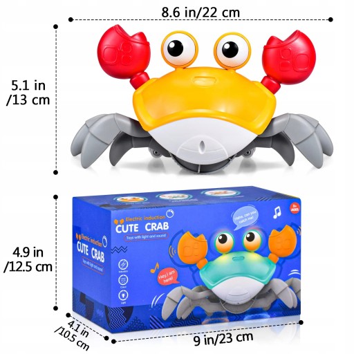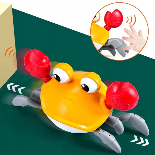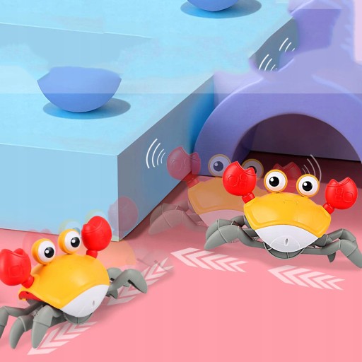 - Zabawka sensoryczna krab ma światło LED, które działa na pełzaniu i omijaniu przeszkód przez czujniki.