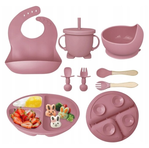 Zestaw Silikonowy Dla Niemowląt dzieci 8 elementów - Różowy