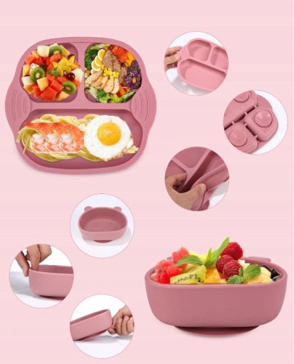 ✅- Talerz i miska mają na spodzie mocne przyssawki, które mocno przylegają do wszystkich gładkich powierzchni.