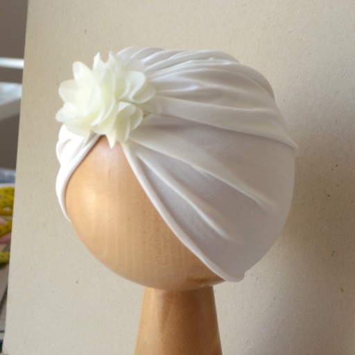 TURBAN BAWEŁNIANY Z TULOWYM KWIATKIEM
