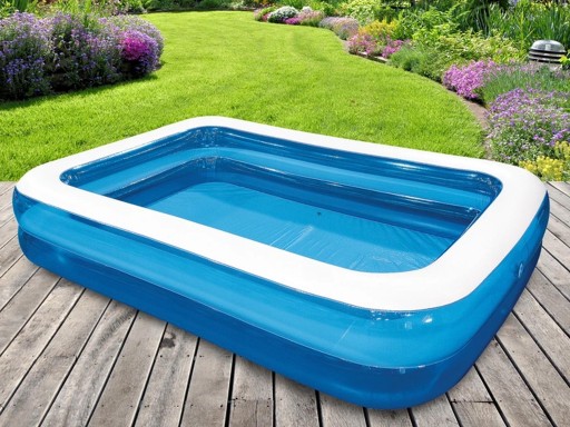 Dmuchany basen ogrodowy o wymiarach zewnętrznych 305x183x50cm. Basen składa się z dwóch niezależnych komór.
