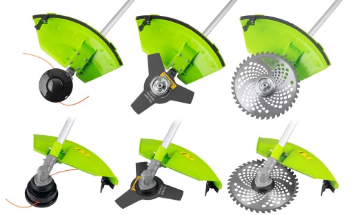 Głowica żyłkowa oraz trymer sprawdzi się w niskiej i średniej trawie, natomiast trójząb świetnie sprawdzi się w gęsto porośniętej trawie czy zaroślach