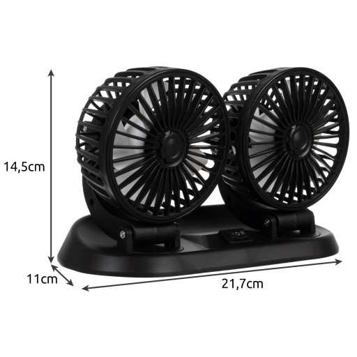 - OBRÓT O 360° - zapewnij sobie i swoim pasażerom komfortową podróż nawet w najgorętsze dni dzięki podwójnemu wentylatorowi samochodowemu. Ten innowacyjny wentylator jest wyposażony w dwie głowice, które można obracać o 360 stopni, co umożliwia skierowanie nawiewu dokładnie tam, gdzie jest potrzebny.