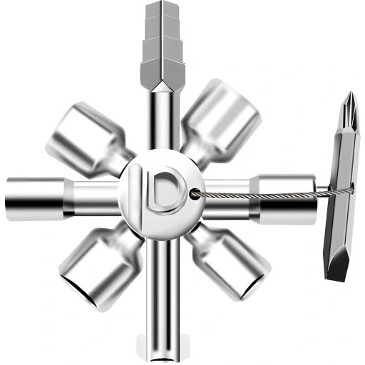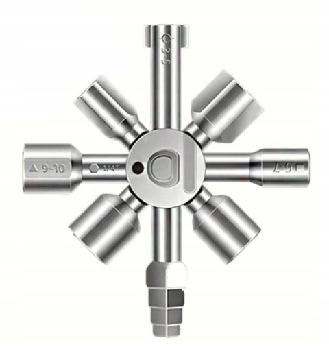 ✅ Uniwersalny klucz do szafek sterujących posiadający 10 różnych końcówek.