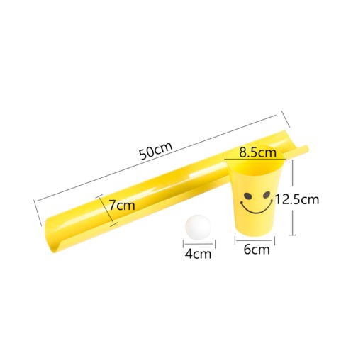[Specyfikacja produktu]: połowa: 50 cm x 5 cm/19,69 cala x 1,97 cala, kubek: 8,5 cm x 12,5 cm/3,35 cala x 4,92 cala, średnica kulki: 4 cm/1,57 cala. (Kolory kulek i kubków są losowe)