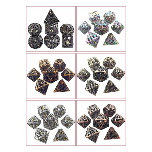 Zestaw 7 kości DND z pustego metalu i etui do nauczania matematyki D&D PRG