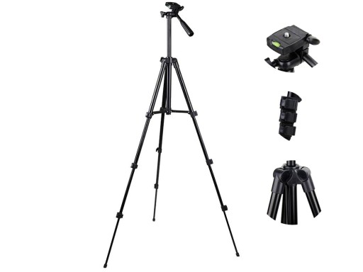 Statyw posiada uniwersalny gwint do aparatów i kamer oraz uchwyt do telefonów. Wyposażony w teleskopowo rozkładane nóżki z czterema stopniami regulacji wysokości. Solidna konstrukcja gwarantuje stabilny i płynny obraz. Wysokość statywu wynosi od 32 cm do 100cm.