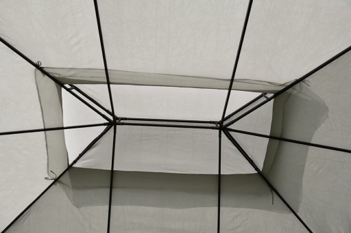 Wodoodporny dach z wywietrznikiem zapewnia skuteczną ochronę przed deszczem i słońcem, jednocześnie umożliwiając optymalną cyrkulację powietrza. Wyposażony w otwory wentylacyjne z moskitierą, skutecznie chroni przed owadami, zachowując przewiewność i komfort użytkowania. Wykonany z trwałego poliestru o wysokiej gramaturze 230 g/m?.
