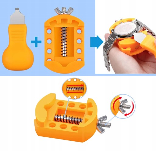 Ten otwieracz jest kompatybilny z różnymi zegarkami, a jego regulowana konstrukcja dostosowuje się do średnicy od 15 do 60 mm.