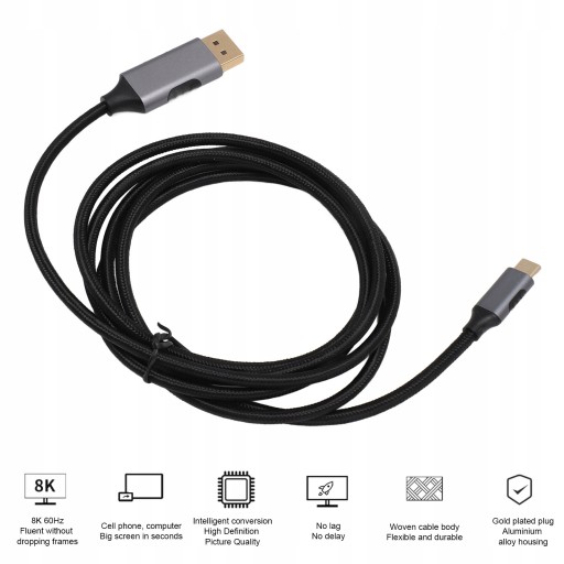 Specyfikacja:Typ artykułu: Kabel USB typu C do DisplayPort 1.4