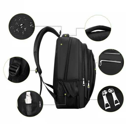 - 🎒 - Główna komora mieści laptopy o przekątnej 17,3 cala i mniejszej, posiada 3 główne przegrody, 1 kieszeń z przodu, 2 boczne kieszenie z siatki z boku, tornister o bardzo dużej pojemności.