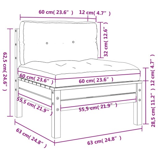 - Wymiary sofy bez podłokietników: 63 x 63 x 62,5 cm (szer. x gł. x wys.)