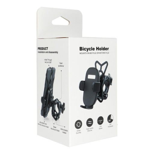 Kompatybilność z różnymi typami kierownic sprawia, że uchwyt jest uniwersalny. System montażu polega włożeniu telefonu w trzy punktowy uchwyt oraz założeniu elastycznego silikonu na telefon, co zapewnia szybkie i pewne mocowanie.