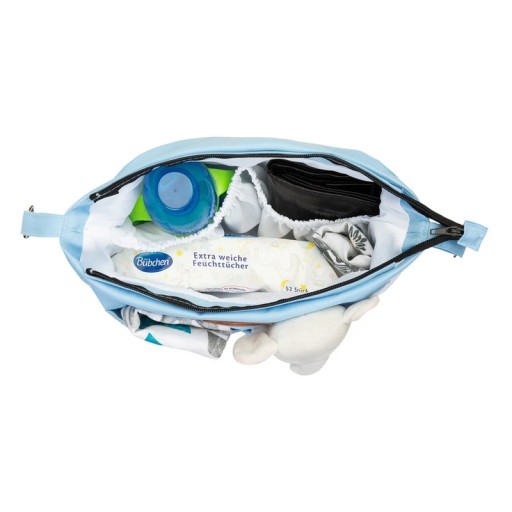Organizer do wózka to mniejsza alternatywa dla toreb, która pomieści wszystkie niezbędne rzeczy Idealnie sprawdzi się naspacery, zakupy lubna wyjazd Posiada dwie przegródki zprzodu, natomiastwe wnętrzu znajdują się dwie duże kieszonki wykończone gumką Całość zamykana jest nazamek błyskawiczny Organizer uszyty jest zsolidnej, wodoodpornej tkaniny. W komplecie znajdują się uchwyty do przymocowania organizera do ramy wózka.