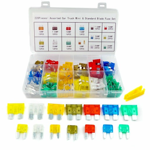 Zestaw bezpieczników samochodowych wysokiej jakości składający się z 220 elementów w wygodnym organizerze. Do dyspozycji dostajemy dwa rodzaje bezpieczników: standard i mini i możemy być pewnie, że zaspokoją 100% potrzeb każdego mechanika czy majsterkowicza. Gratis chwytak do bezpieczników do ich łatwego wyjmowania z gniazda.