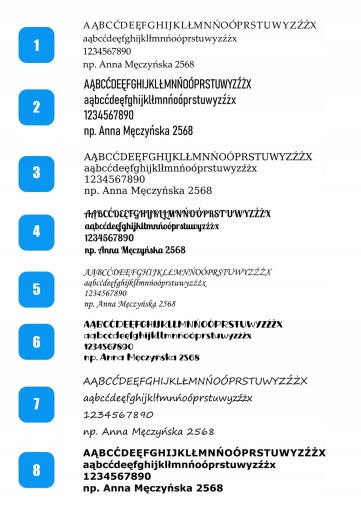 – wg przesłanych wytycznych (przy wyborze czcionek z naszego katalogu)