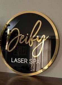 Зеркальный логотип для гостиной, кабинета, золотое оргстекло, серебряные буквы, логотип