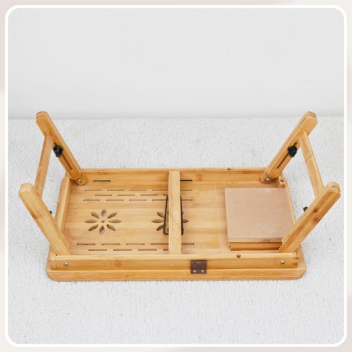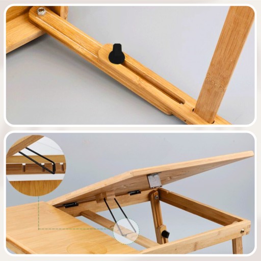 Kompaktowy stolik pod komputer lub tablet. Idealny do pracy i zabawy w domu lub podczas podróży. Umożliwia komfortowe użytkowanie laptopa czy innego urządzenia w praktycznie każdych warunkach. Po złożeniu zajmuje niewiele miejsca, można łatwo go schować np. pod łóżko i mieć go zawsze pod ręką. Wyposażony w profilowane zagłębienie na tablet lub telefon. Można też przeciągnąć ładowarkę i ładować te urządzenia jednocześnie z nich korzystając. Możliwość dostosowania długości nóżek zapewnia komfort pracy w każdych warunkach.