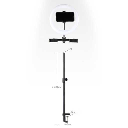 D: 1x stojak do montażu na biurku, 1x 26 cm światło wypełniające, 1x zacisk telefonu