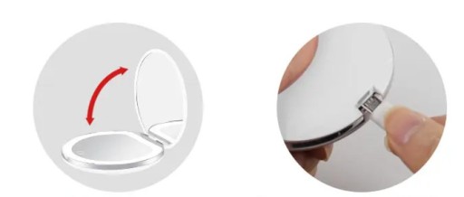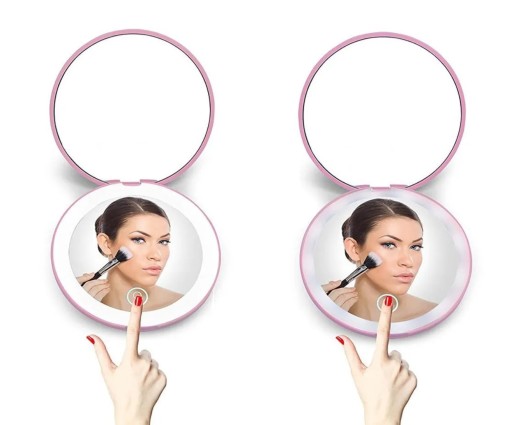 ➡️ Składane i stylowe lustro LED to element, którego nie może zabraknąć w damskiej torebce! Zawiera dwa lustra – jedno klasyczne i drugie, które powiększa do 2 razy. Zobaczysz nawet najmniejsze niedoskonałości makijażu lub włosów, które możesz precyzyjnie ułożyć.