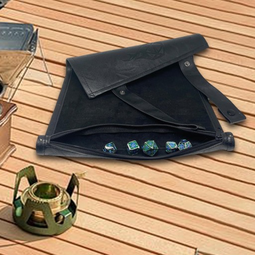 [Projekt 2 w 1]: Nasza skórzana torba na kości służy również jako mata do gry, chroniąc kości przed stłuczeniem i zadrapaniami podczas ich rzucania.