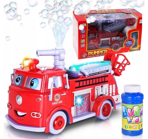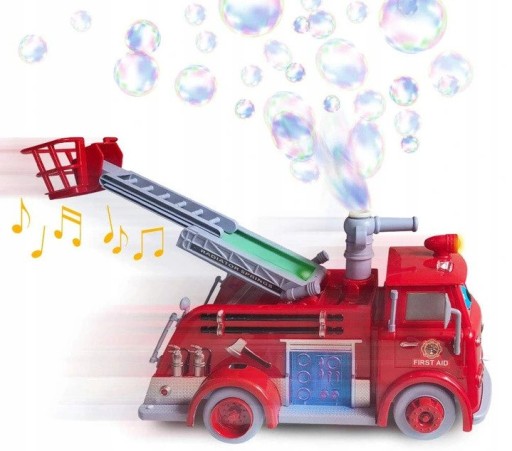 Samodzielnie jeżdżąca straż pożarna, do tego puszczająca bańki mydlane. Taka zabawka szybko się nie znudzi. Może być używana w domy oraz na podwórku.