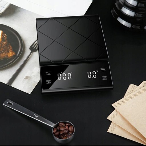 Odkryj sekret doskonałej kawy dzięki naszemu elektronicznemu wagomierzu kawowemu z wbudowanym timerykiem! Kontroluj każdy aspekt procesu, łącząc precyzję wagowania z perfekcyjnym czasowaniem, idealny dla miłośników kawy i kulinariów. ⏱️