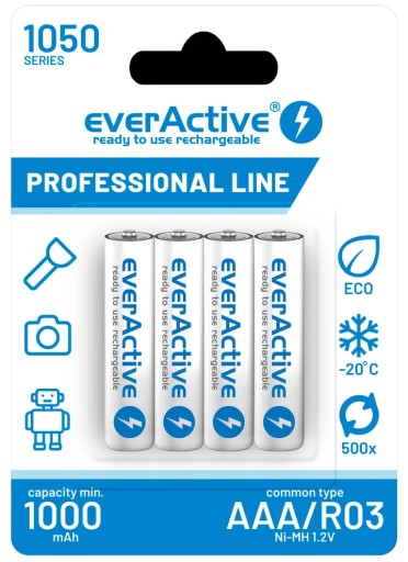 4 x innowacyjny akumulator R03 AAA 1050 mAh everActive wykonany w technologii "ready to use".