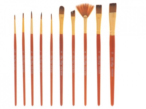 Zestaw 10 pędzli artystycznych przeznaczonych do różnego rodzaju farb.