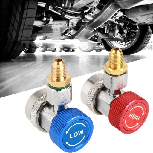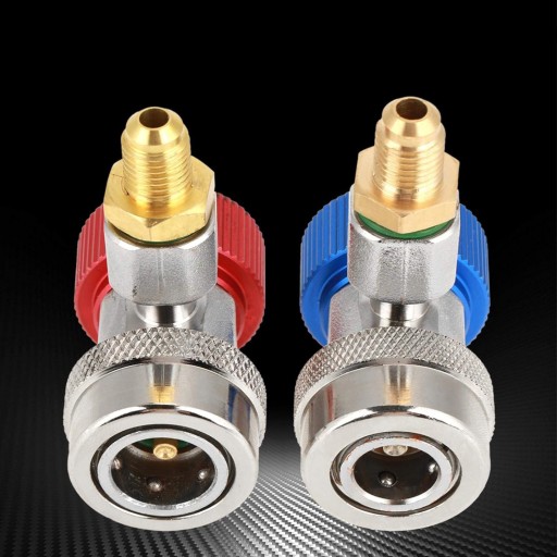 🚚🚚🚚【Profesjonalnie wykonane】 Narzędzie samochodowe do naprawy klimatyzatorów R134a zostało zaprojektowane przez doświadczonych rzemieślników. Każdy szczegół jest profesjonalnie przeszkolony i wykonany z wysokiej jakości mosiądzu o doskonałej odporności na zużycie. Niebieski to szybkozłącze typu Low-Side / adapter i czerwony to złącze Top-Side / adapter typu Top-Side.