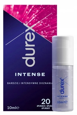 - Stymulujący żel intymny Durex® Intense został opracowany dla kobiet z myślą o pobudzaniu bardziej intensywnych doznań seksualnych. Zaledwie 2-3 jego krople naniesione na łechtaczkę w trakcie gry wstępnej zwiększają wrażliwość na bodźce i zapewniają kobiecie wyjątkowe doznania.