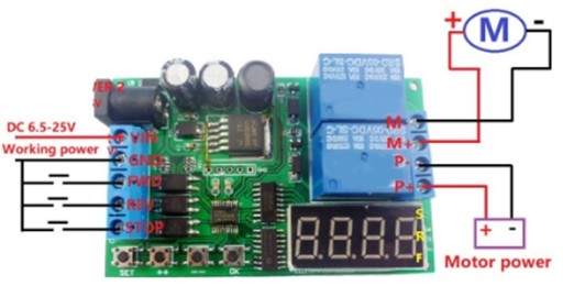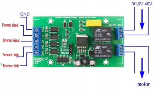 Urządzenie umożliwia zmianę kierunku obrotów silnika DC wraz z obsługą wyłączników krańcowych.