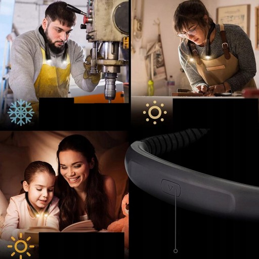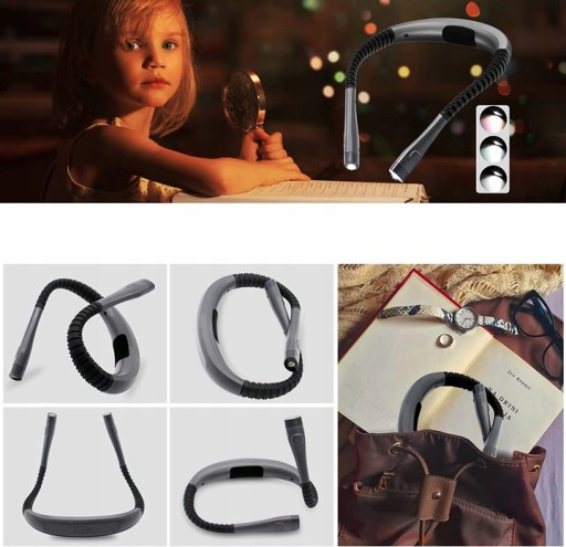 Po prostu zawieś lampkę do czytania na szyi, wygnij ramiona aby oświetlały to, co chcesz.
