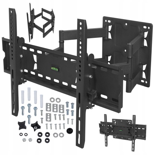 Uchwyt wyposażony został w regulację trzech płaszczyznach. Oznacza to możliwość regulacji kąta nachylenia (± 15°) oraz regulację w poziomie w zakresie ± 90°. Rozkładane ramiona łączące uchwyt z podstawą pozwalają na dopasowanie odległości telewizora od ściany w zakresie 90 - 490 mm.