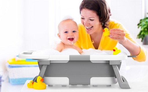 Wanienkę Bathe możesz złożyć na pół, dzięki czemu bez problemu zmieści się w torbie czy walizce.