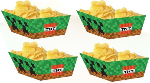 Pudełka na chipsy to bardzo praktyczny element kolekcji imprezowej Minecraft. Spełniają funkcję miseczek w których można podać także owoce lub ciasteczka.