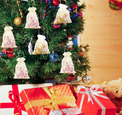 ⭐Woreczki z organzy 7x9 cm beżowe na PREZENT ŚWIĘTA BIŻUTERIĘ ŚLUB 25 szt.⭐