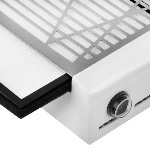 Urządzenie wyposażone jest w niezwykle mocny a zarazem energooszczędny wiatrak, który zapewnia doskonałe pochłanianie wszelkich ubytków podczas zabiegów kosmetycznych paznokci. Cała instalacja dostosowana jest do długotrwałej pracy przy niskim zużyciu prądu.