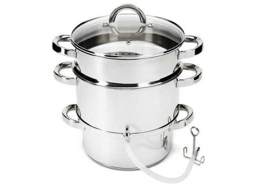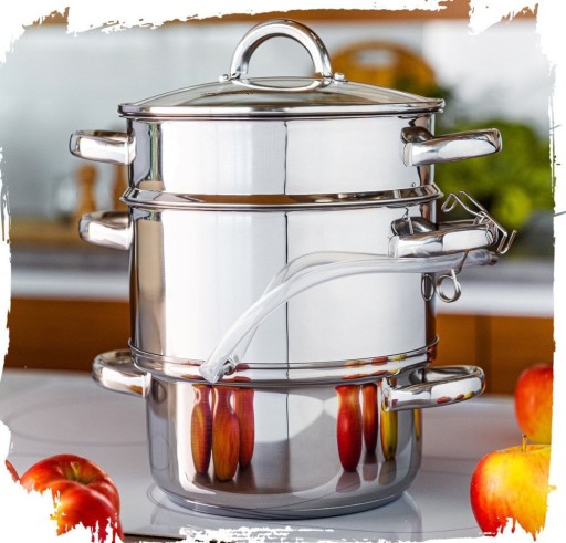 Sokownik wykonany został z najwyższej jakości stali nierdzewnej 18/10, co gwarantuje bezpieczeństwo w kontakcie z żywnością oraz trwałość produktu, odpornego na uszkodzenia i wysokie temperatury. Dzięki wielowarstwowemu dnu, garnek nagrzewa się równomiernie na każdym poziomie, przyspieszając proces przygotowywania soku i skracając czas gotowania. To skuteczne oszczędzanie energii, które odbije się pozytywnie na Twoich rachunkach za prąd. Przygotowanie soku z owoców miękkich zajmuje zaledwie 30 minut. Natomiast przygotowanie soku z owoców twardych trwa maksymalnie do 60 minut. Wykorzystaj miąższ pozostały po wytłoczeniu soku do przygotowywania smacznych dżemów.