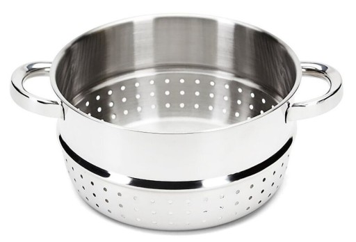 - Zawartość zestawu: 1 x parnik, 1 x Pokrywka, 2 x Garnek 26 cm, Metalowy zacisk, Silikonowy wężyk